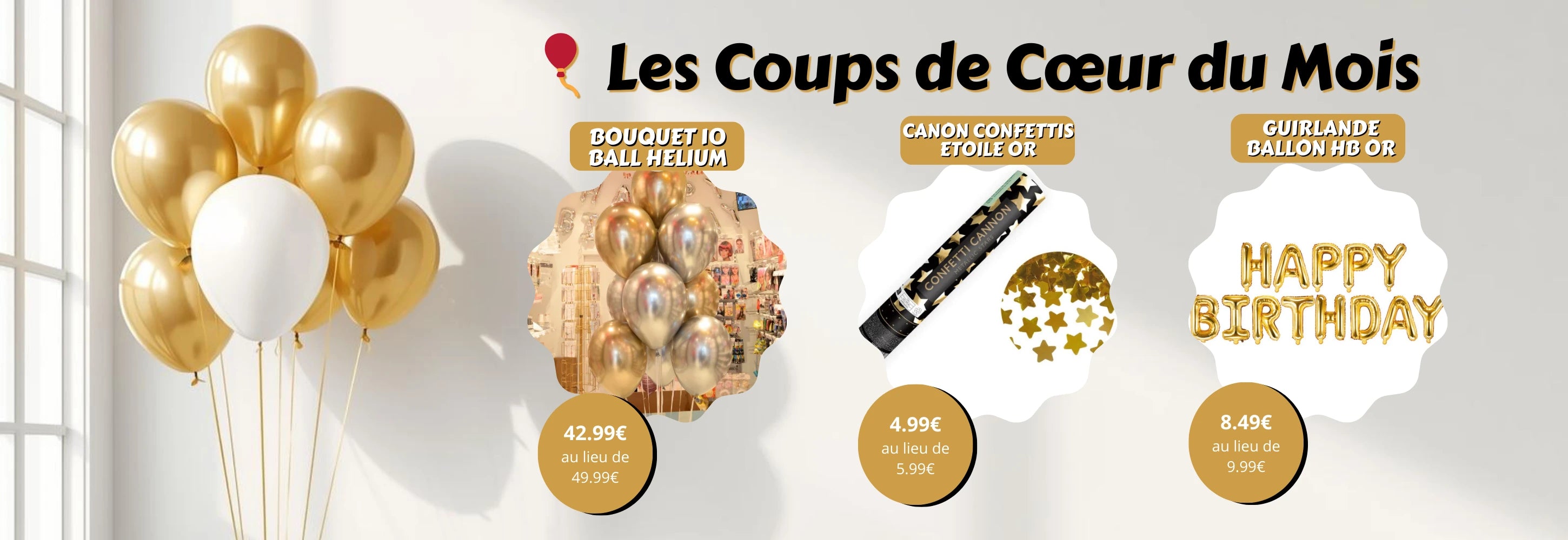 Pack Chic Doré – Ballons Hélium, Guirlande & Déco